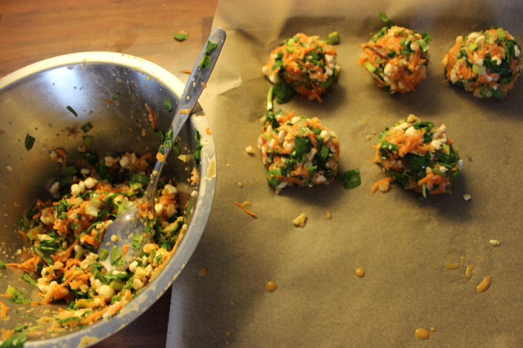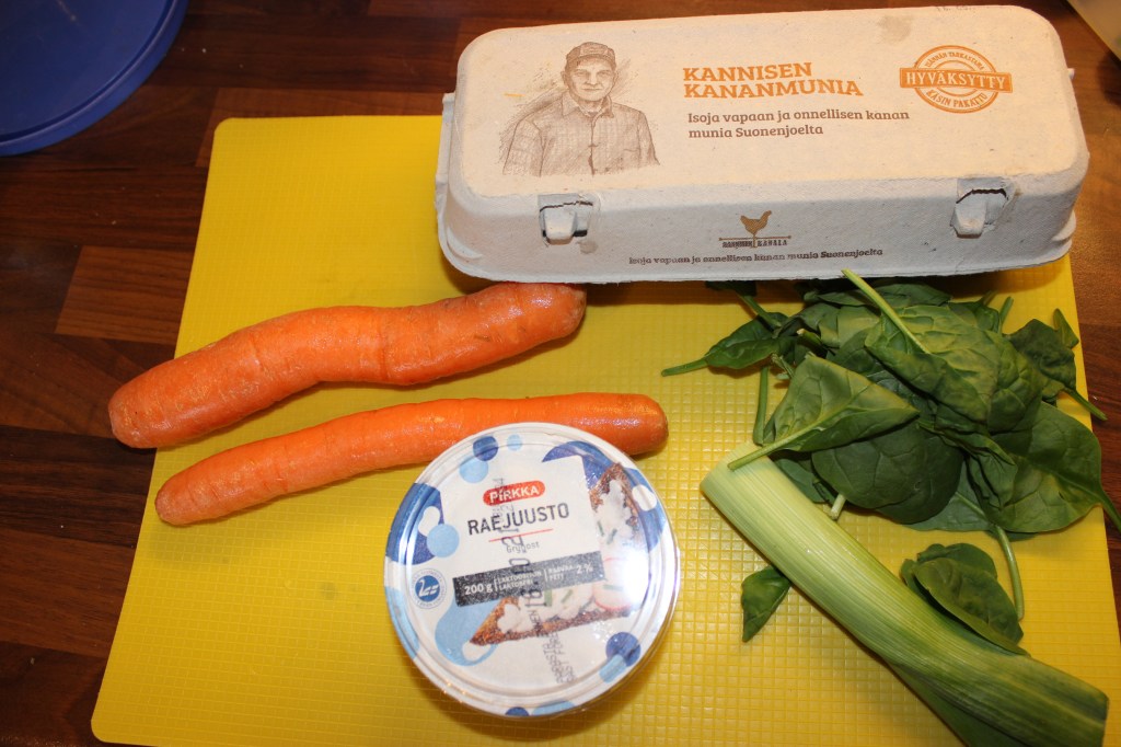 Joskus jääkaappiin vain jää kaikenlaista epämääräistä sälää. Syödäkin pitää joka päivä, mutta sälästäkin pitää päästä eroon. Vähän tylsiintyneenä katselin jääkaapin sisältöä, jotain kevyttä voisi syödä taas työlounaalla. ”nuo pinaatitkin kävelee kohta ihan itse jääkaapista biojätteeseen, jos en tee jotain”- ajattelin- ”Raejuustokin oli jotain ruokaa varten, mutta suunnitelmat muuttui taas lennossa tuonkin osalta”. No jospa tekisi vaikka kasvispihvejä. Porkkanaa raasteeksi, sekaan loppu purjonpala ja pinaatit ja raaejuusto. Massaa sitomaan kaksi kananamunaa ja 2 ruokalusikallista pankojauhoja sitomaan nesteitä massassa Mausteeksi chilirouhepitoista sekoitusta parin myllyn pyöräytyksen verran. Kyllä tällä taas nälkä siirtyi seuraavalle päivälle, jääkaapista sai jämiä hyötykäyttöön ja kohtuu kevyellä mentiin taas muutama päivä eteenpäin.