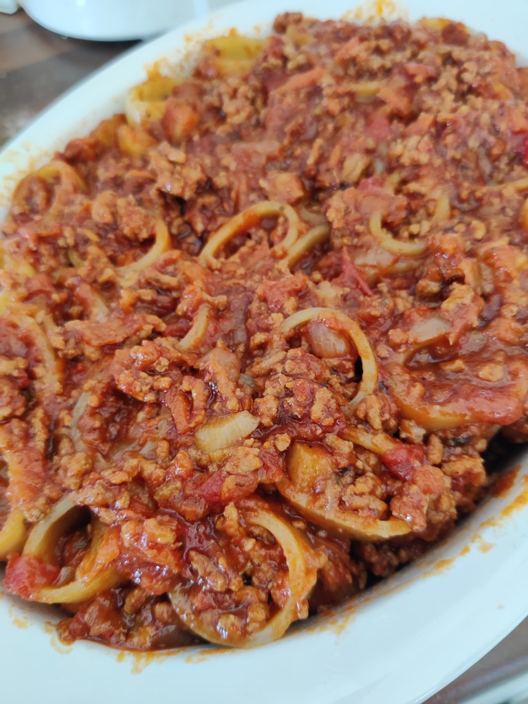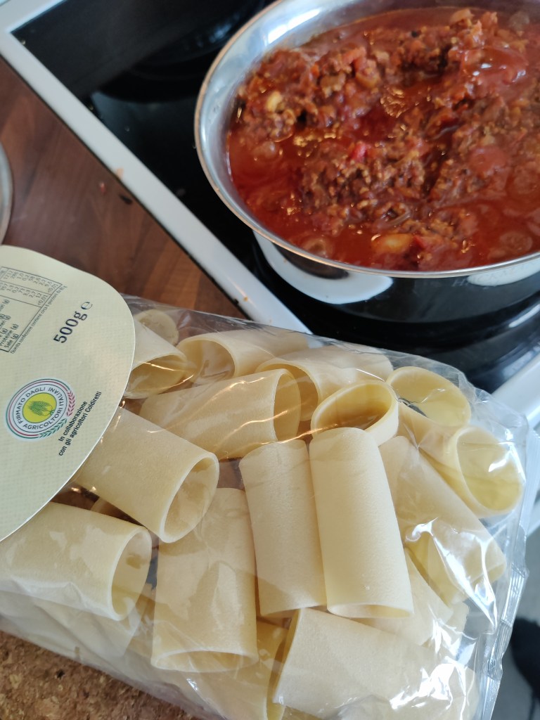 Tämä on taas näitä out-of -the -box ruokia. Bolognesea ei tarvitse keksiä uudelleen ja jopa Italian sisällä kokit kinaavat siitä mikä on oikea bolognese, mutta sekin on näitä italialaisen intohimoisen ruokakulttuurin helmiä. Minulle bolognese on slow- foodia,, pitkä haudutus tekee siitä juuri sellaisen pehmeän, tasapainoisen jauhelihakastikkeen. Olen kokeillut laittaa jauhelihan raakana myös, muttei tuntunut kivalta, joten minulle siinä on kypsää jauhelihaa. Paljon paseerattua tomaattia ja tomaattimurskaa, rosmariini toimii aina pitkässä haudutuksessa mausteena lihan kanssa. Kasviksia laitan reilusti, porkkanaa, lehtiselleriä (niitä aikoita ruokia, joissa todella arvostan sellerin makua itsessään), sipulia ja valkosipulia. Lopuksi persiljaa tai basilikaa. Viiniä olen joskus lorauttanut alkufreesauksen jälkeen kasviksille, antaa toki oman vivahteensa kastikkeelle, mutta ilmankin pärjää näin kotioloissa. Kerralla kun hauduttaa 700-800g jauhelihaa, saman verran kasviksia 2-3 purkkia erilaisia tomaattikastikkeita, samalla vaivalla syntyy loistavaa kastiketta vähäksi aikaa. Itse pakastan sitä kahden ruokakerran annoksina, saa taas helpolla siitä vaikka ihan spagetin tai tagliatellen kaveriksi.