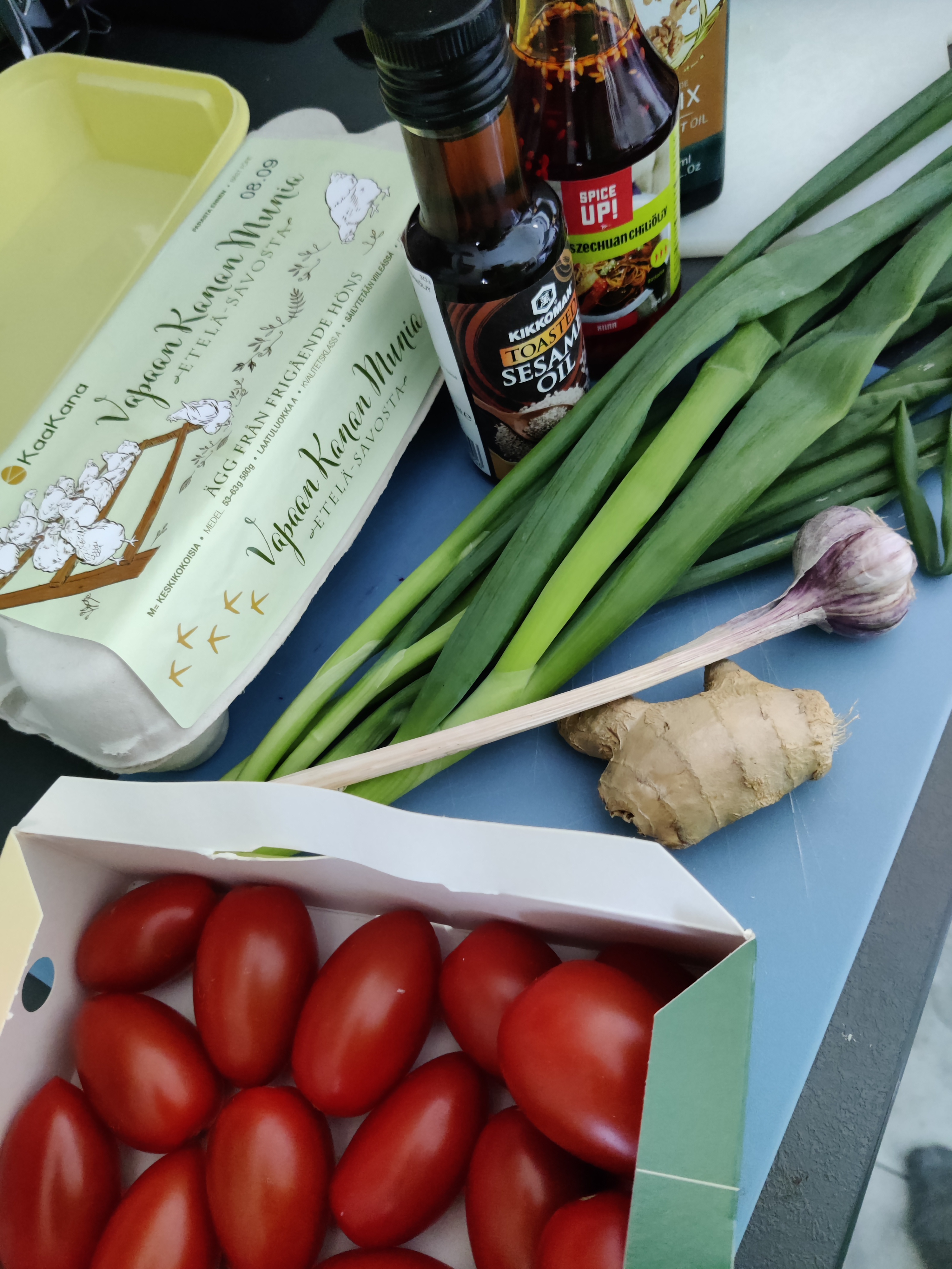 Kävin syömässä kiinalaisessa ravintolassa. Mielenkiinnosta otin runsaasta tarjonnasta tomaattia ja siinä oli lientä ja kananmunaa. Hmm, aika kivan makuinen yhdistelmä. Tätä voisi kokeilla kotonakin, eikun reseptiä hahmottamaan sosiaalisen median kerrostumista. Ensimmäisenä löytyi nimikin chinese egg drop soup. Ohjeita löytyi monenlaisia ja hahmotin tätä itselleni kokeiltavaksi ja melkein kaikki löytyi kotoa, vain tuoretta inkivääriä ja kevätsipulia hain kaupasta.